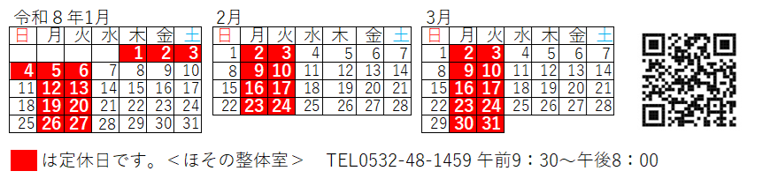 休業日のお知らせ 2026年 1・2・3月 |