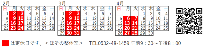 休業日のお知らせ 2026年 2・3・4月 |